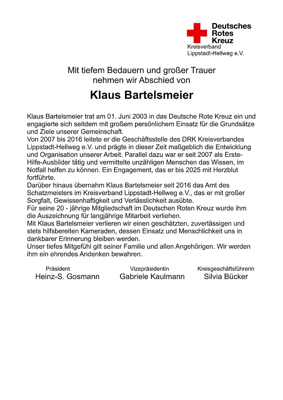 DRK trauert um Schatzmeister